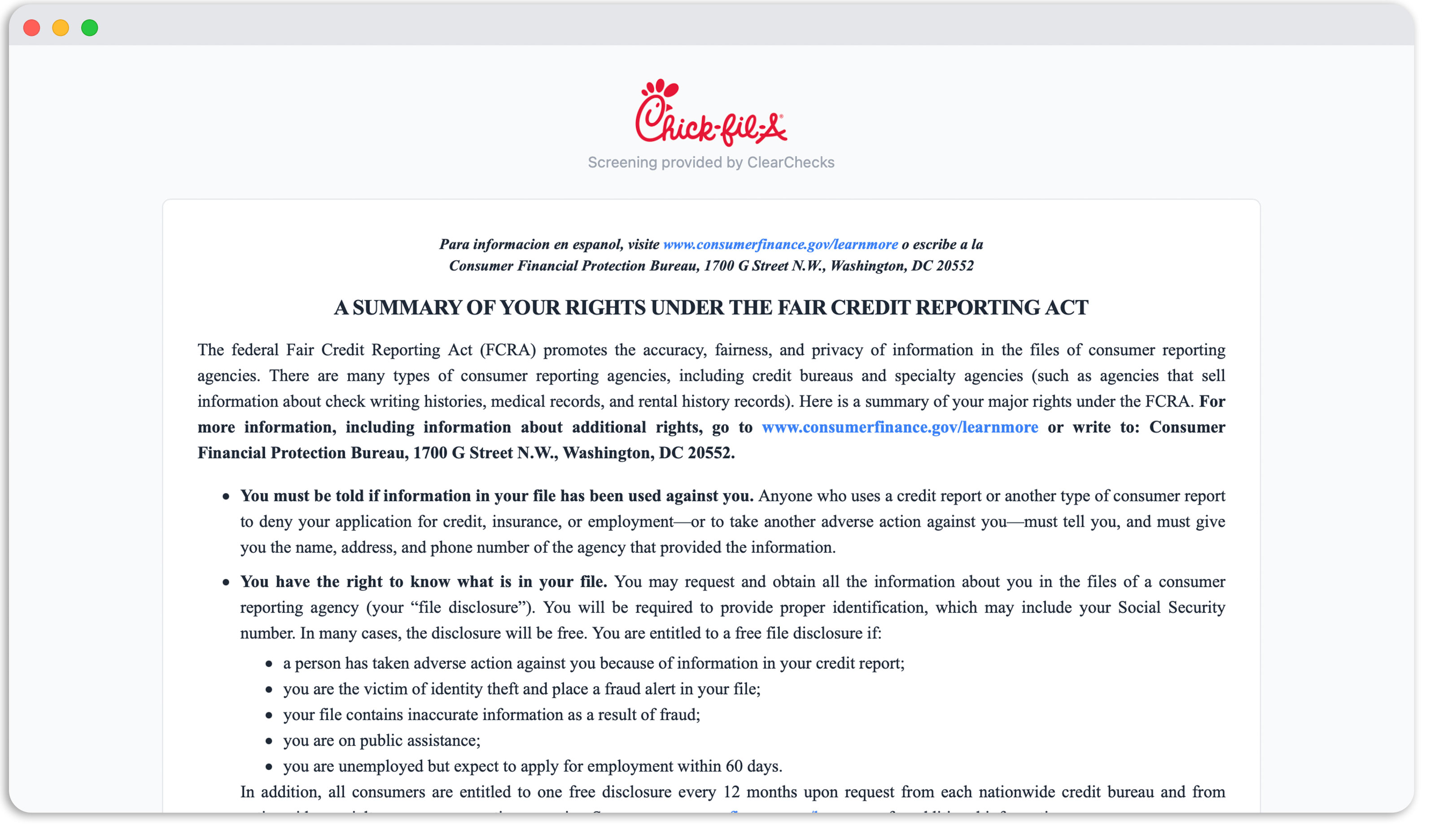 Federal FCRA Disclosure